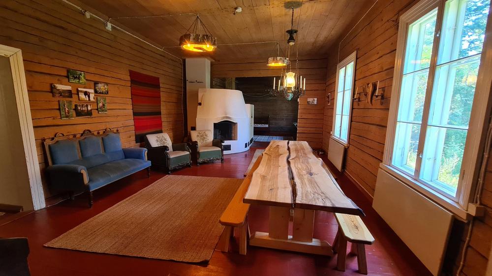 Tarjoamme majoitusta noin 50-neliöisessä hirsimökissä, josta löytyy 5 vuodepaikkaa (ja 2 lisävuodetta). Tunnelmallisessa mökissä on pieni tupatakkauuni, lattialämmitys sekä pieni sähköliesi, uuni ja grilli ruoanlaittoa varten. Mökin suurista ikkunoista pääset ihailemaan luontoa. Majoittujien käytettävissä on rantasauna, laavu ja vene.