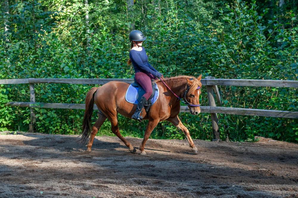 Liikunnan osalta P4-hevoset hyötyvät usein säännöllisyydestä ja pitkästä alkuverryttelystä. Lihakset tarvitsevat aikaa lämmetäkseen ja äkillinen kuormitus voi pahentaa oireita. Lilyllä alkuverryttelyksi sopii parhaiten puoli tuntia käyntiä ja paljon väistöjä sekä kaarevia uria. Jos en ehdi tehdä pidempää alkuverryttelyä, pidän treenin suhteellisen kevyenä.