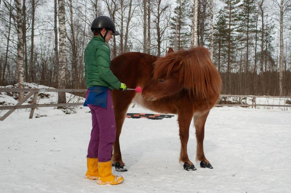 Ruokapalkan käyttö ei lisää automaattisesti hevosen hyvinvointia. Kouluttaminen voi tuntua hevosesta epämiellyttävältä, jos palkkio ei ole mieleinen tai koulutustilanteessa syntyy turhautumista. Palkkion menettäminen voi aiheuttaa pettymyksen tunteen, joten myös koulutuksen päätteeksi kannattaa antaa selkeä loppupalkka ja toistaa samat rutiinit. Itse annan aina hevoselle kourallisen rehua ja kasan heinää, kun vien sen tarhaan koulutuksen päätteeksi. Tutut rutiinit luovat turvaa ja rauhoittavat.