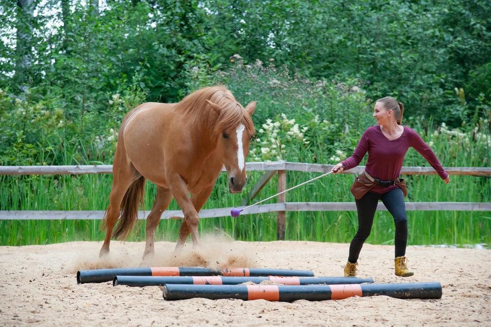 Koska syöminen on hevoselle elintärkeä resurssi, ruokapalkka voi kiihdyttää hevosta. Siksi koulutus kannattaa aloittaa opettamalla palkkiosta luopuminen ja rauhallinen käytös.